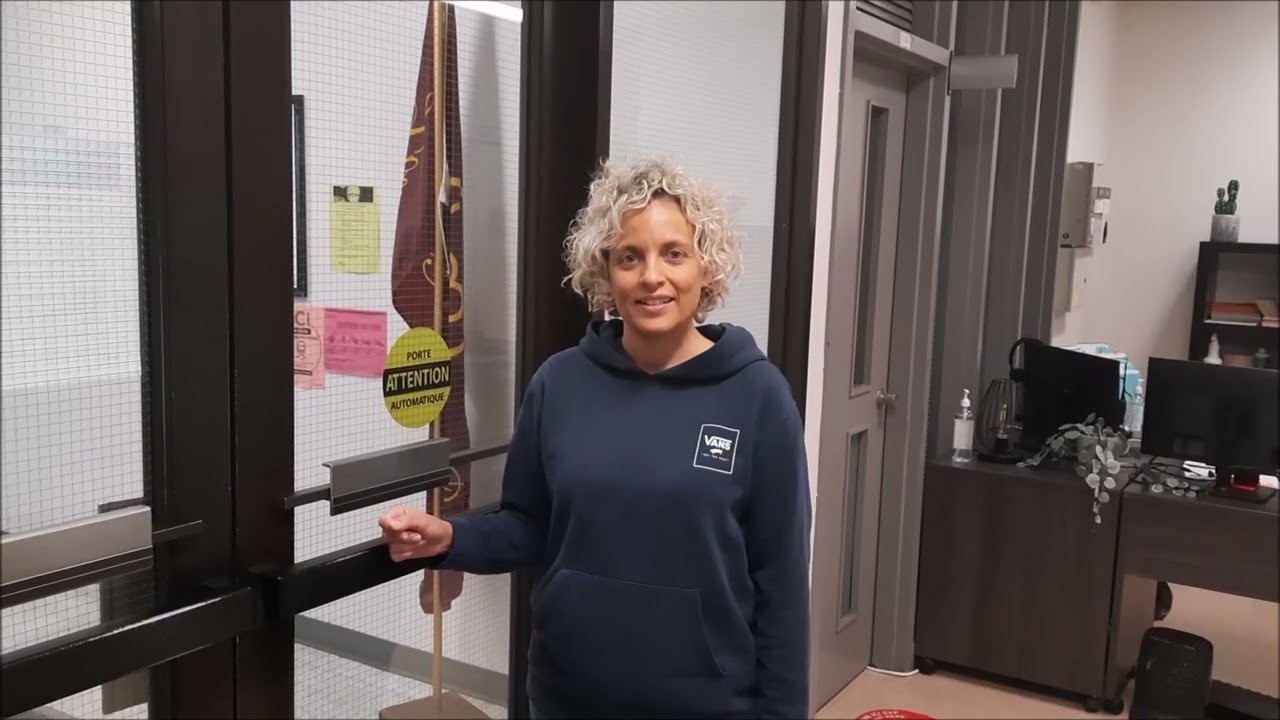 Texte à l’écran : Casiers – Gymnase – Musique – Art dramatique – Informatique